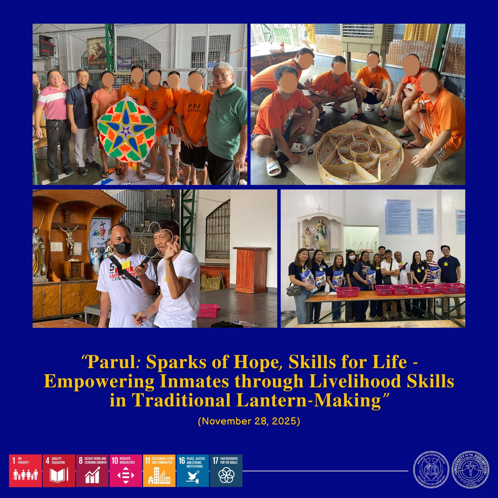 The research and Extension Office (REO), in collaboration with the University of the Assumption Junior High School (UA-JHS) Science Department and the Center for Holistic Advancement of Religious Instruction, Spirituality, and Mission (CHARISM), successfully implemented a lantern-making livelihood skills training for Persons Deprived of Liberty (PDLs) at the Pampanga Provincial Jail on November 28, 2025. This initiative formed part of the University’s continuing efforts to deliver restorative, transformative, and skill-building community engagement programs.